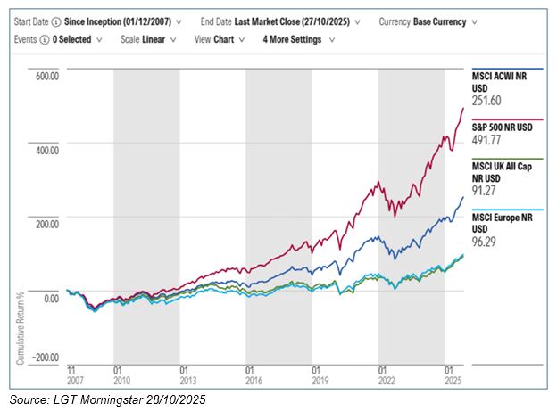 Market leadership has also been narrow, as the Magnificent 7 continue to dominate index performance. Given these factors, it is understandable some investors are concerned. This means diversification is as important as ever to ensure portfolios remain balanced between risky and defensive assets during this period.