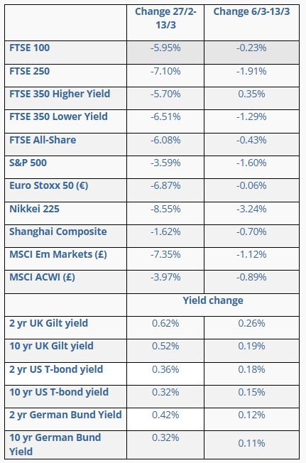 Market performance. The second week of US/Israel-Iran war saw continued equity market falls, but much less than in week one. However, bonds remained under heavy pressure.